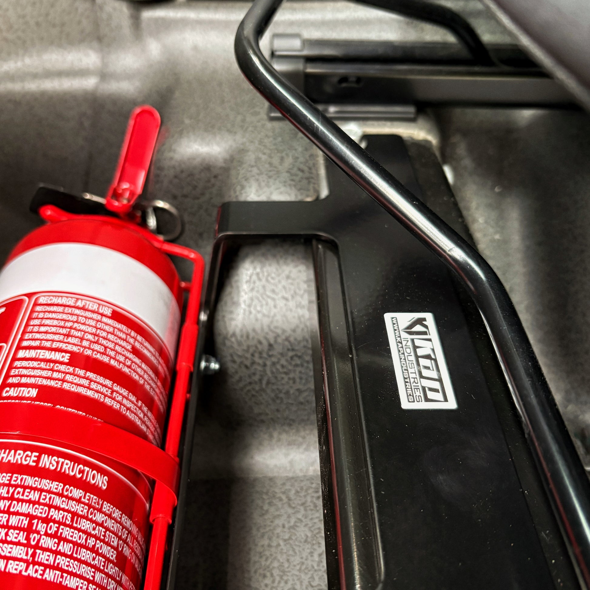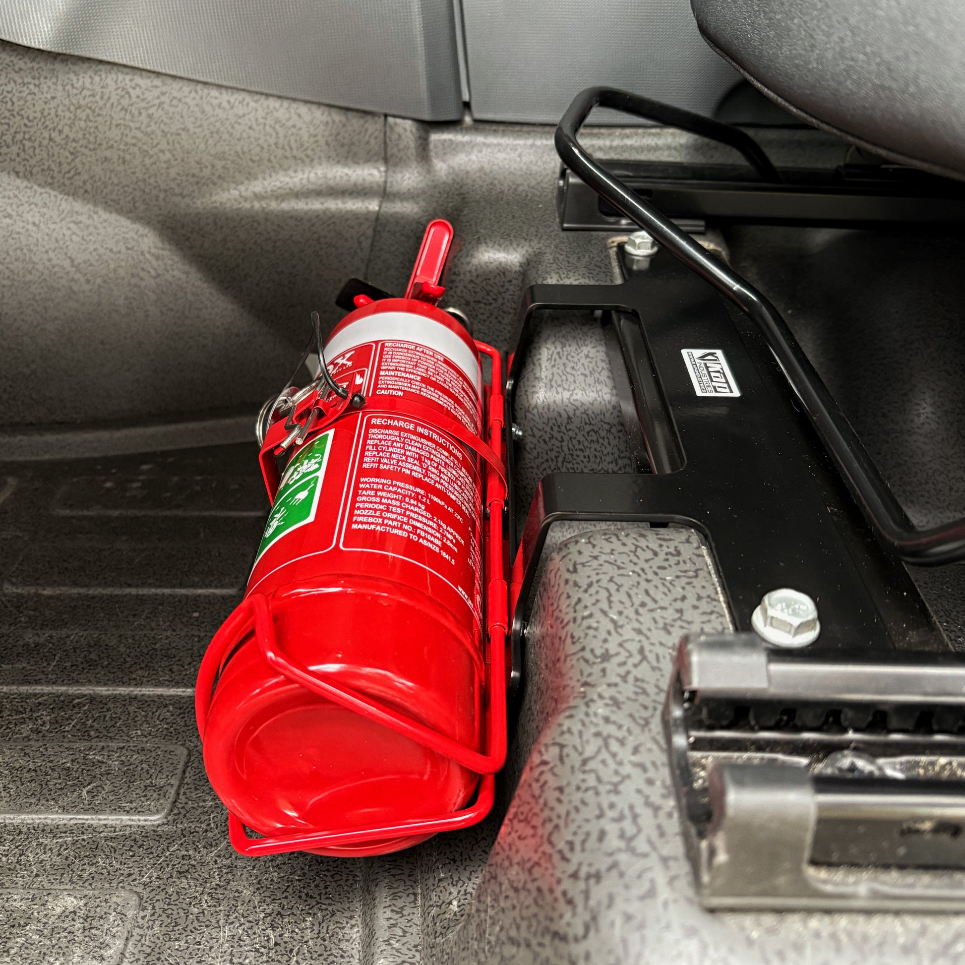 Crafted from CAD-designed, laser-cut lightweight steel and finished in a durable black powder coat, this mount is built to handle the same tough conditions as your Grenadier. It sits neatly out of the way, ensuring full seat movement and passenger comfort while keeping your extinguisher within easy reach when it matters most.