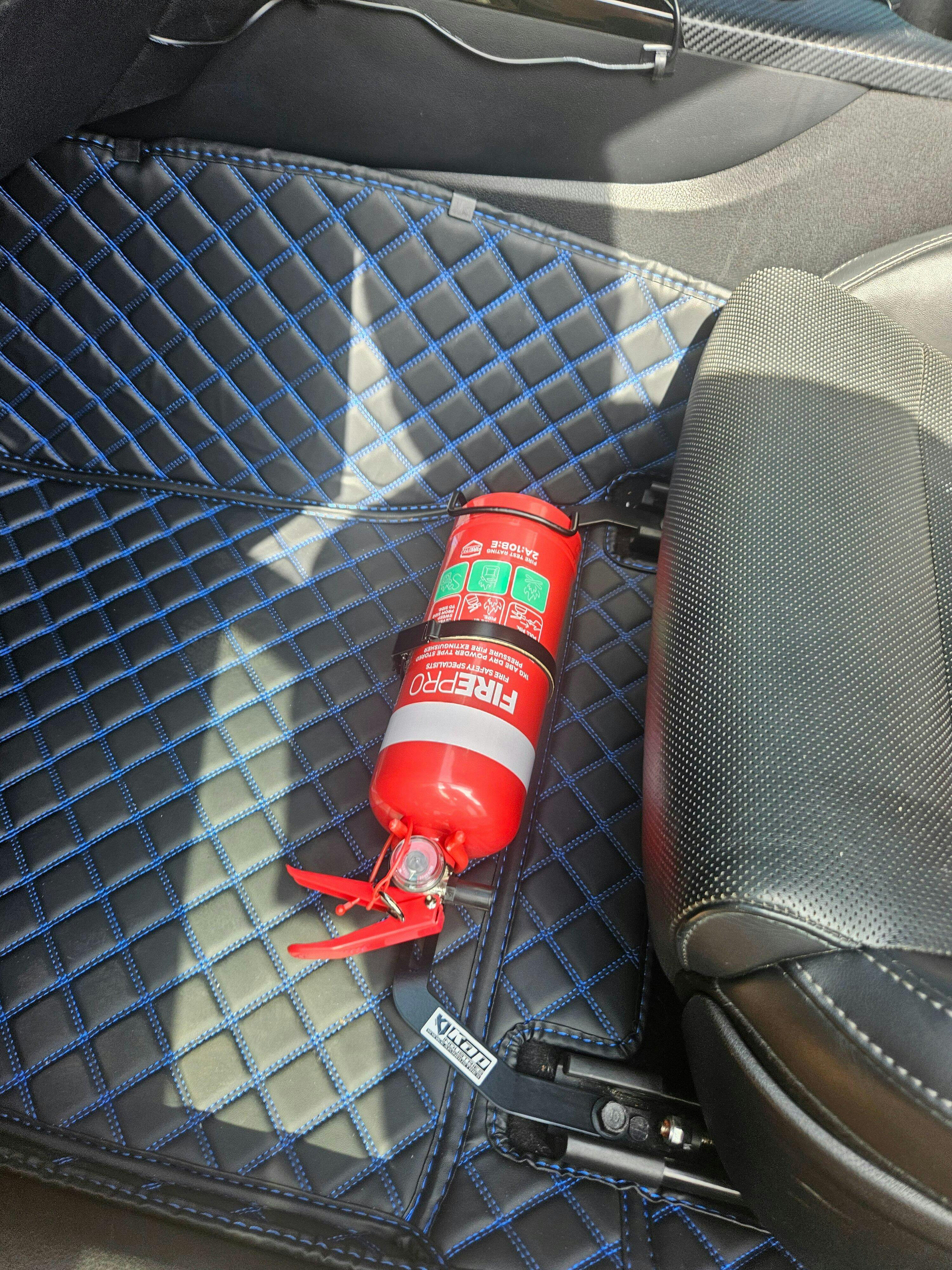 Protect your car from a fire with a fast and east to access fire extinguisher. Every Kap Industries Bracket is made specifically to each vehicle model, designed to bolt in, without having to drill into the vehicle's bodywork.