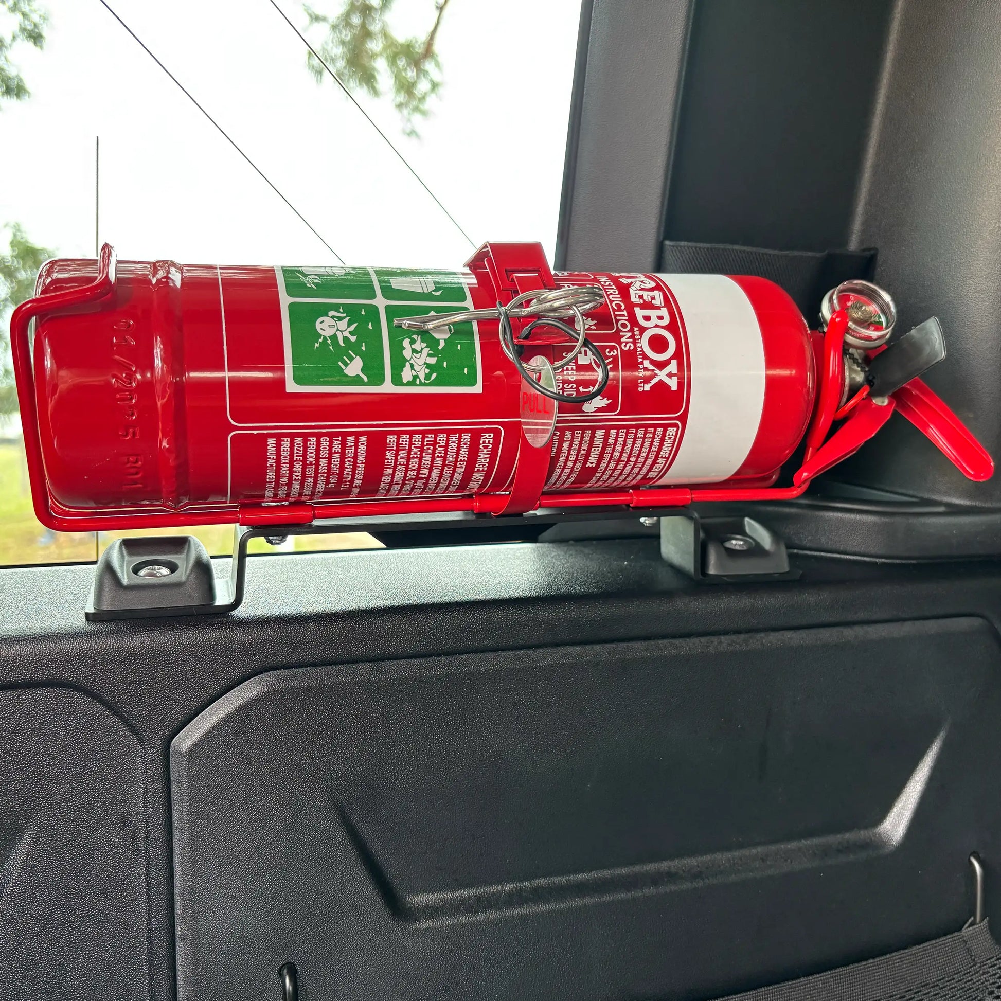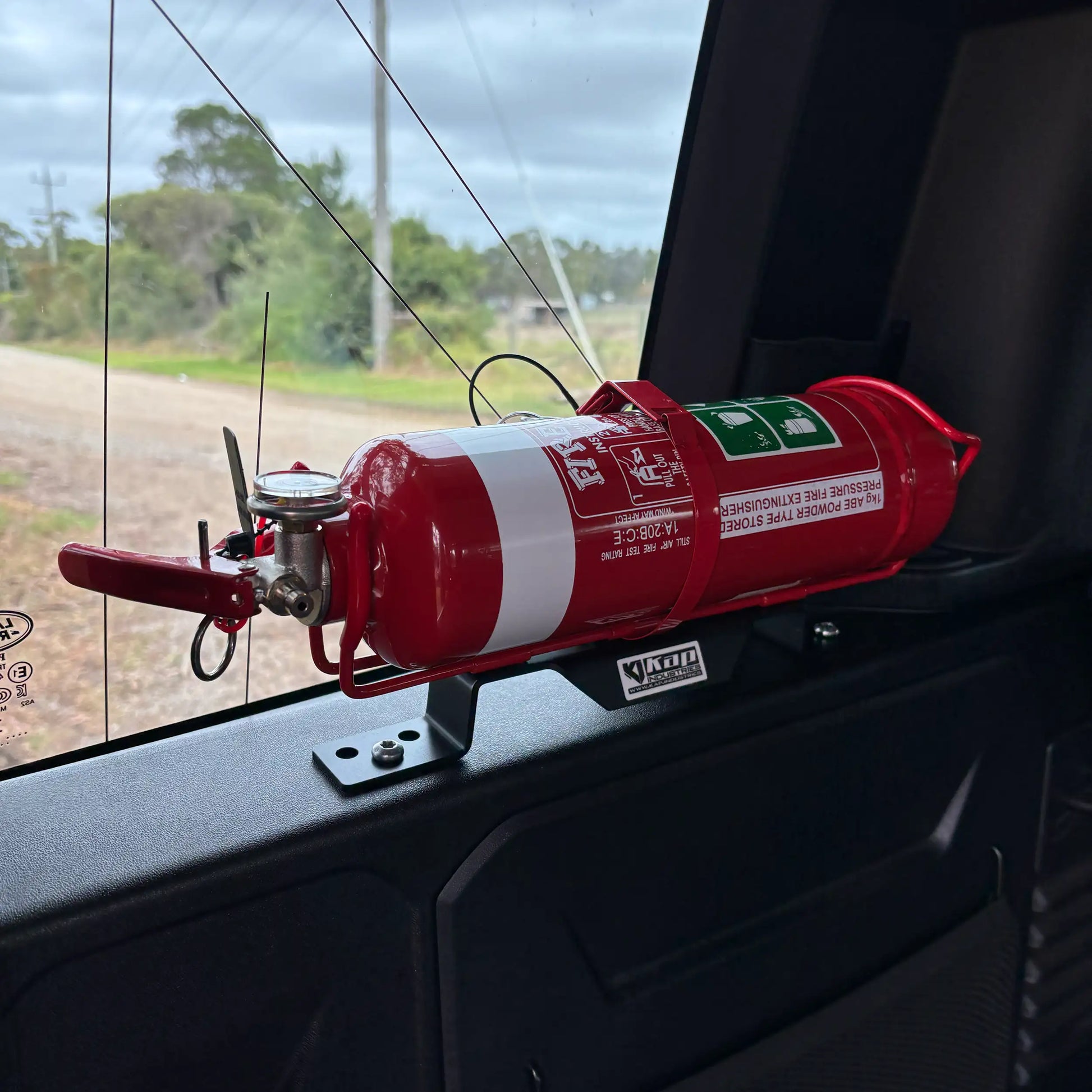 I have both the front seat and rear brackets fitted with 1kg fire extinguishers. They are very sturdy and fit the existing bolts perfectly. Kap Industries are great to work with and produce locally made quality products.